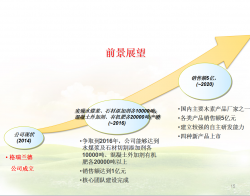 公司现状(2014):格瑞兰德公司成立 实现水煤浆、石材添加剂各10000吨;凝土外加剂、有机肥各20000吨产销(~2016):1、争取到2016年,公司